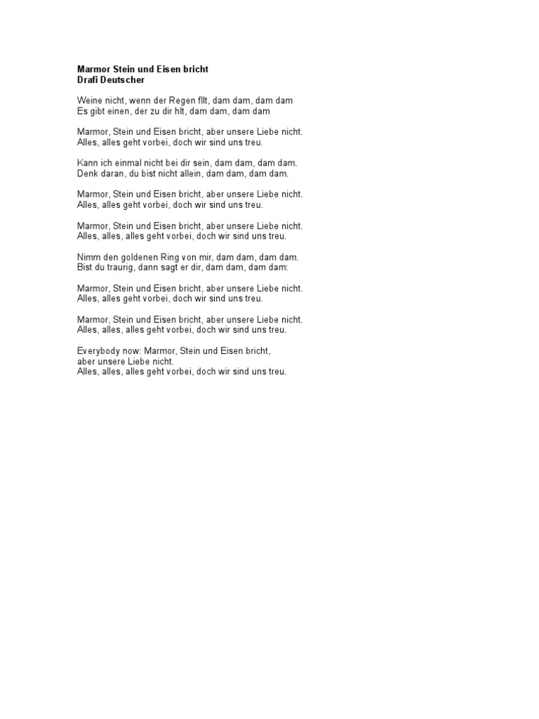 Drafi Deutscher Marmor Stein Und Eisen Bricht Lyrics English Translation